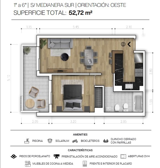 Unidades de 1 dormitorio al frente desde 34m2 hasta 53m2.